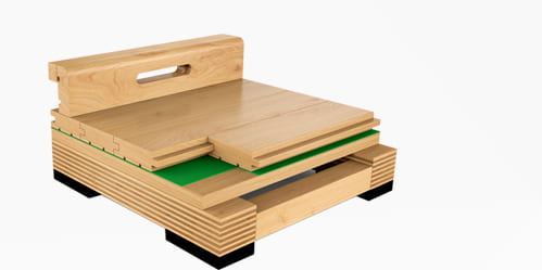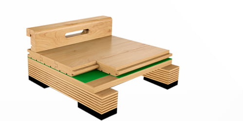 雙層龍骨結(jié)構(gòu)——(專業(yè)比賽之選)符合德國(guó)DIN標(biāo)準(zhǔn),彈性、吸震性良好,適用于大型比賽場(chǎng)館